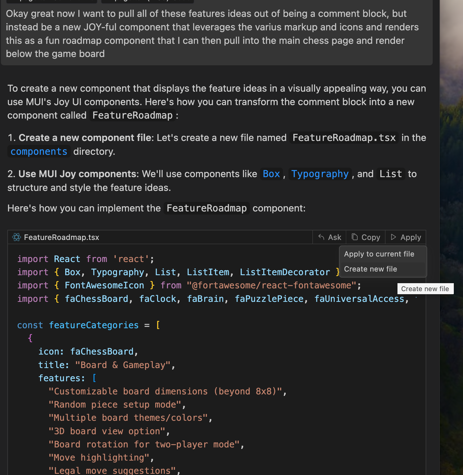 I wanted to get Chess into a v.1 state so I can push it on to my site and start playing with it. But I was mid-way through the stockfish integration and thought I should probably wait. So make me a software switch to AI or not to AI? - One shot and here is a screen shot from Cursor.AI where I play Picard and "Make it so..." is my hard work!
