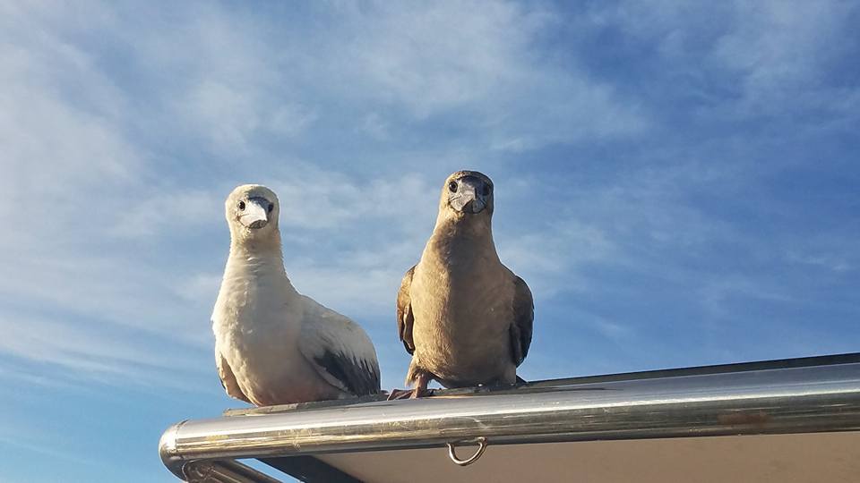 That booby stayed (and shat) on our solar panels for 20 hours of our passage.