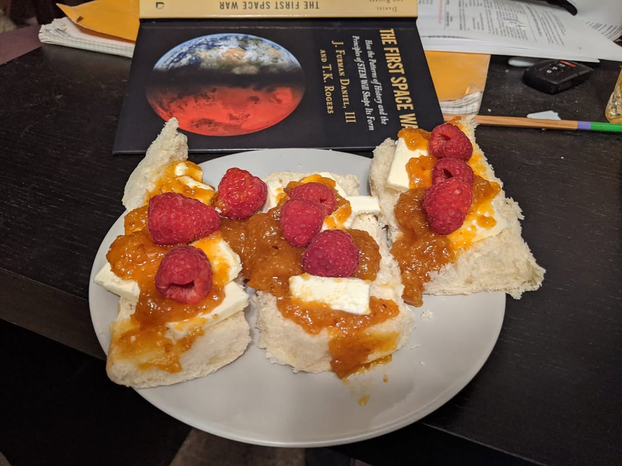 King's Hawaiian bread, butter, raspberries and loquat jam supplied by Sophia Malle.