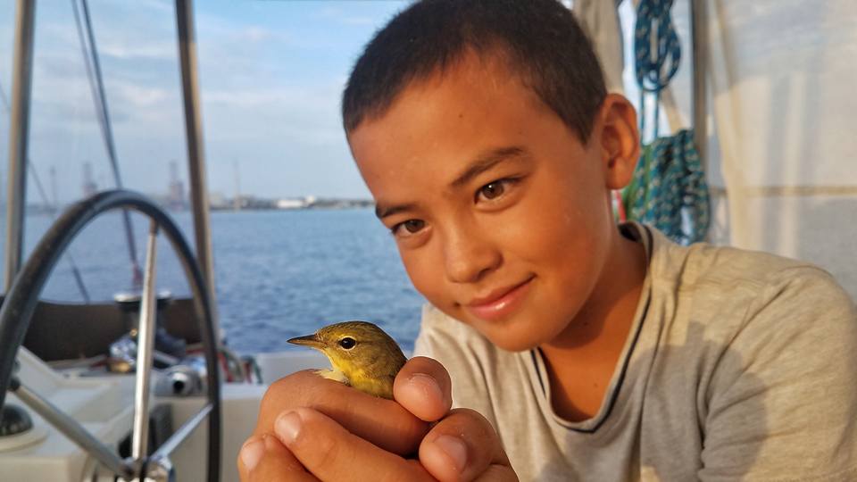 As we approach Aruba... this little guy has been with us for the last 3 hours. Keeps flying inside. Also a large pod of Dolphins welcomed us when we were 3 nm o...