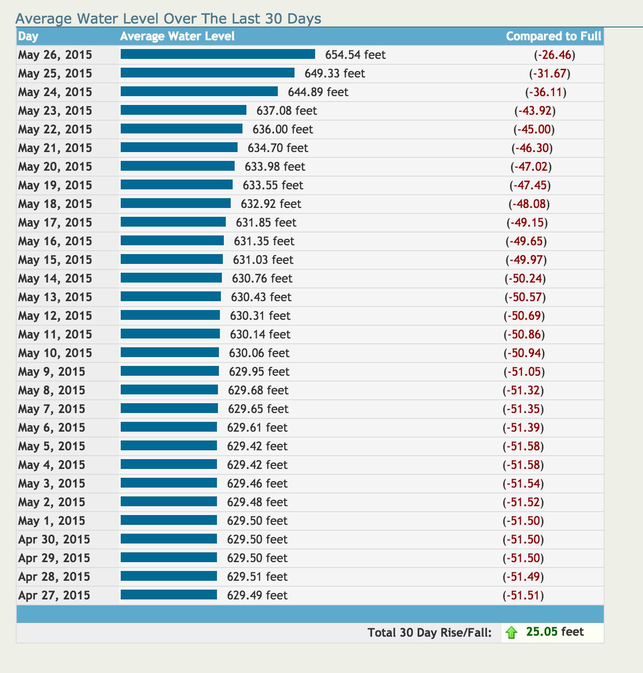 Woo-hoo! The Lake Travis is up 25 feet over 30 days ago! For the first time in many years the lake is more than half-full.
