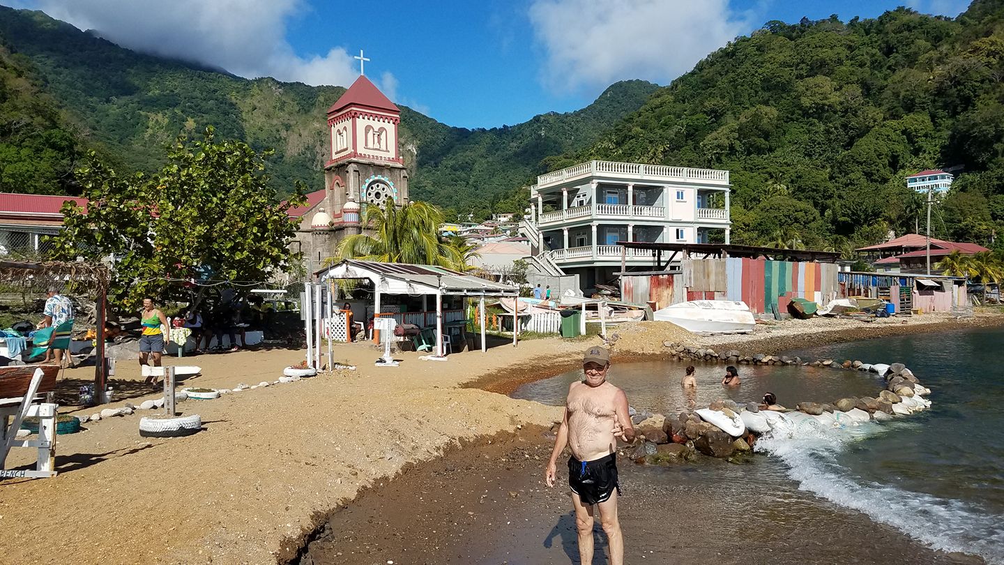 This is Bubble Beach at the south end of Dominica in the bay with Scott's Head.