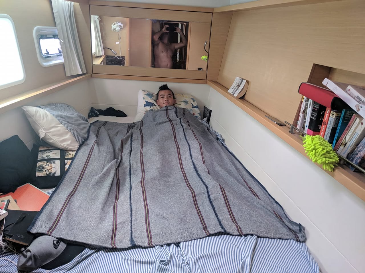 2nd project, a light cotton blanket made from some local fabric, maybe cost about $2 in material?