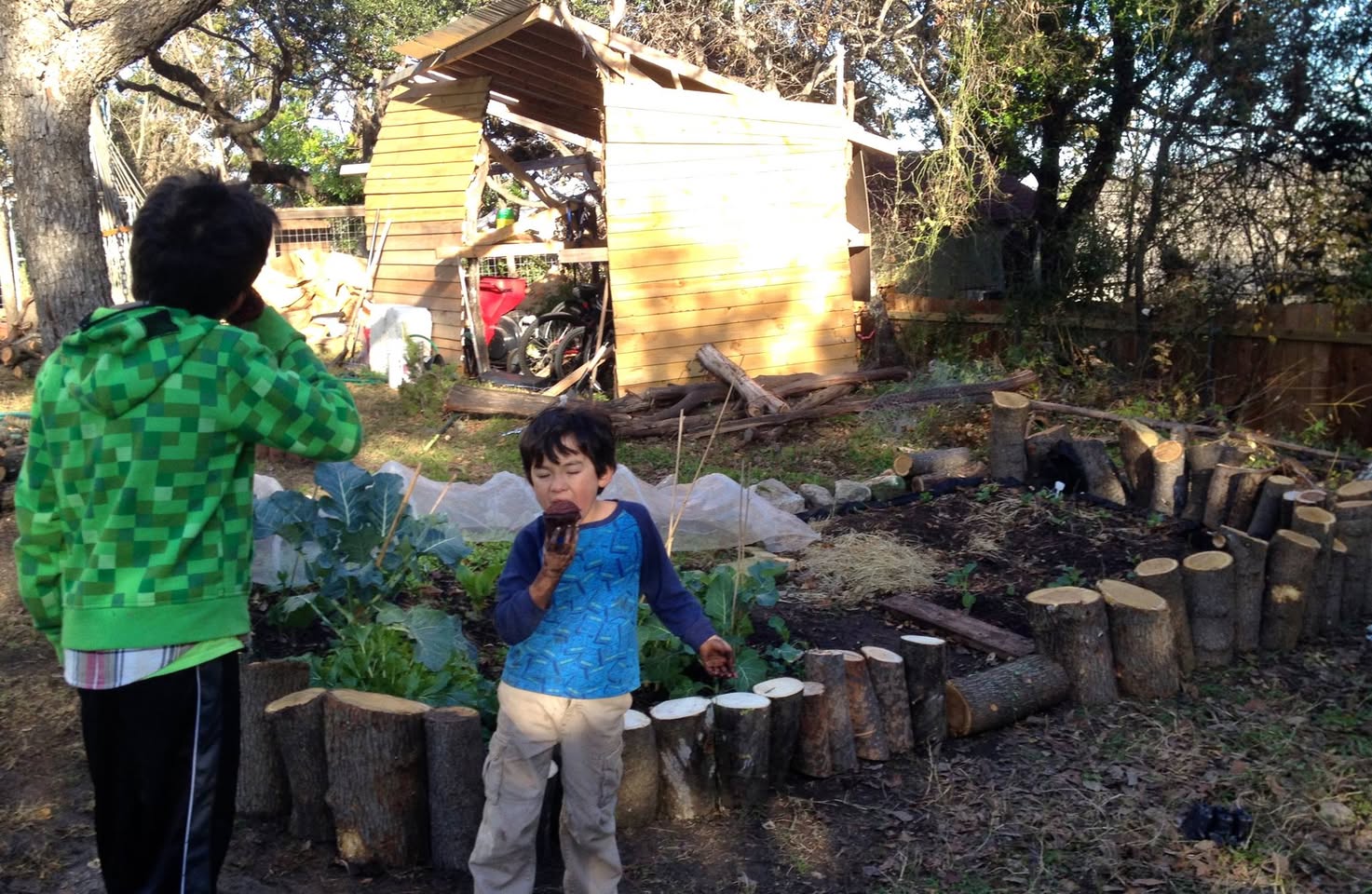 As a bonus from the 5 trees cutdown - a cut-log siding for the latest raised bed. Originally posted on Facebook on January 05, 2014.