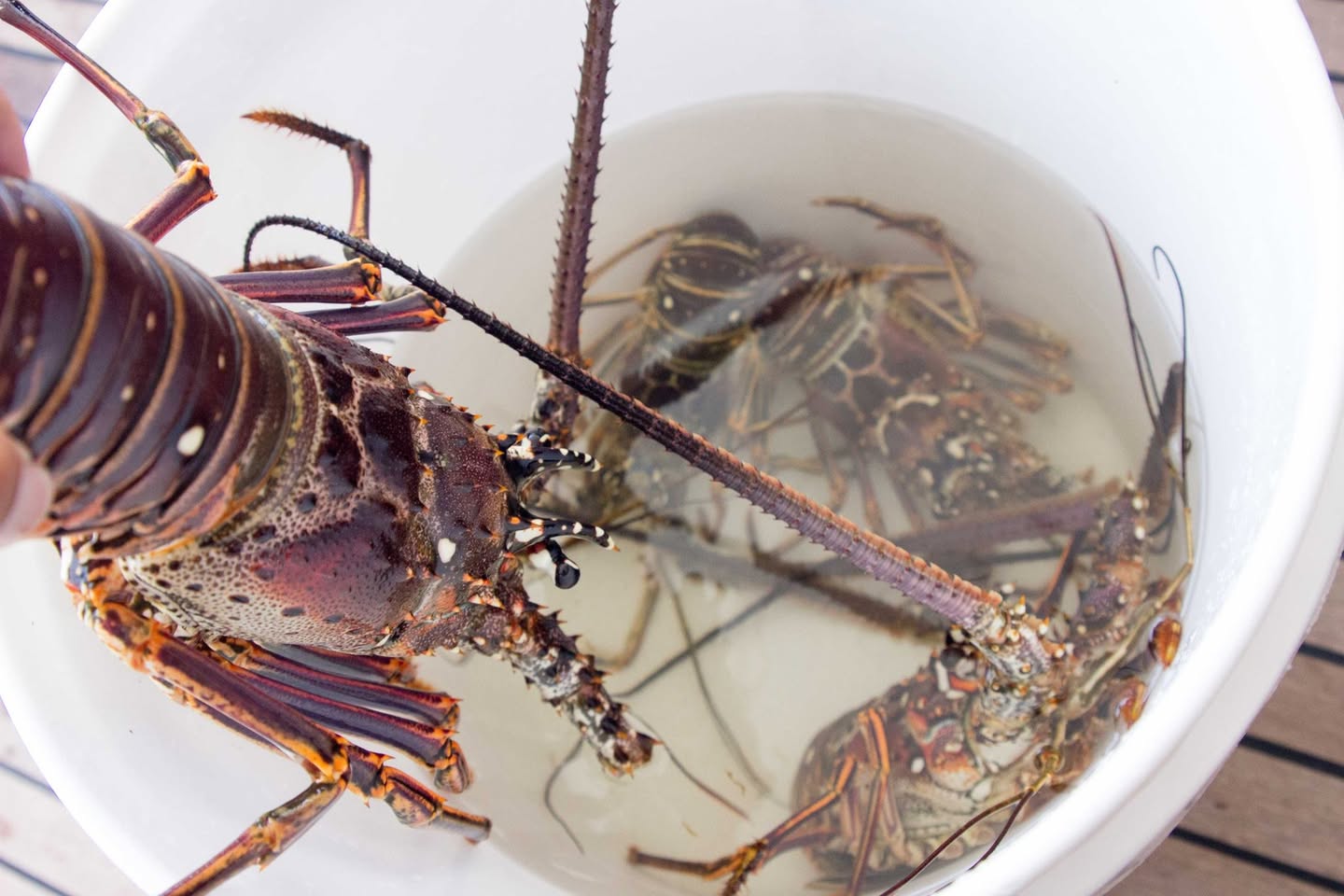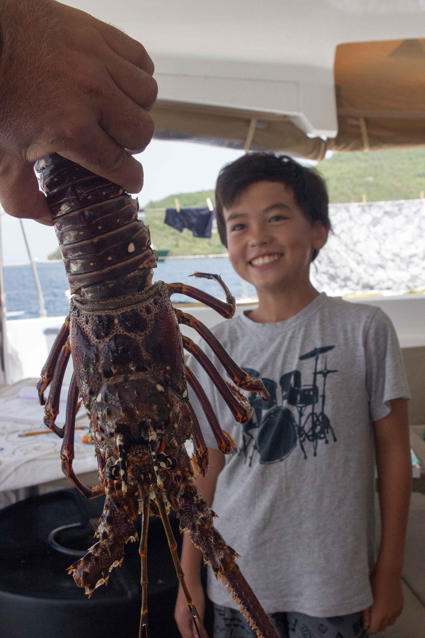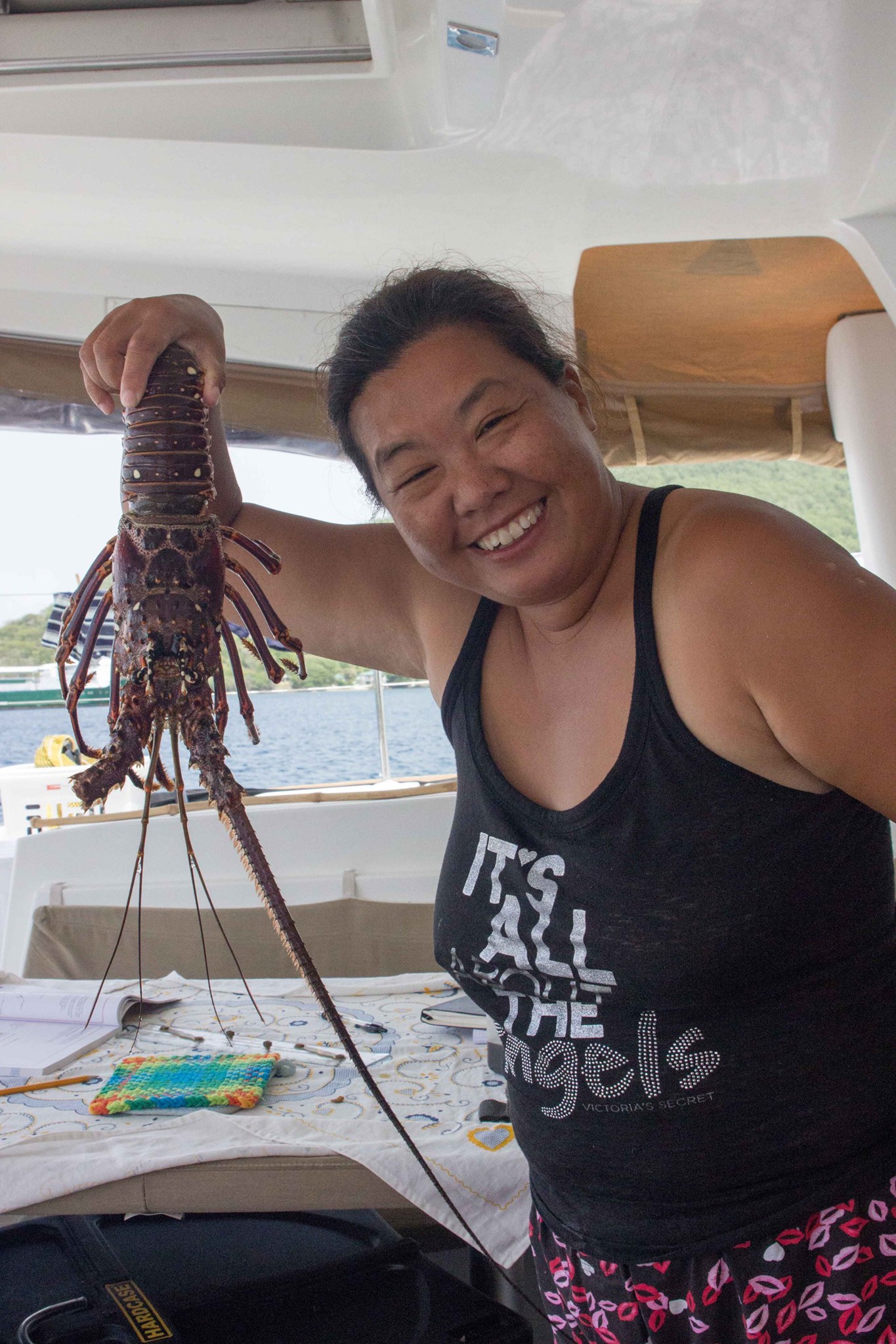 Tonight's Menu: Surf and Turf! Another productive morning, caught 4 lobster. Bought some nice steaks from Doris' Fresh Food (amazing 3rd generation Indian-owned...