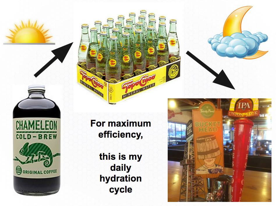 I am working on a presentation, and inside of that presentation I am working on a game loop slide. So I put this together - this is my daily hydration loop!