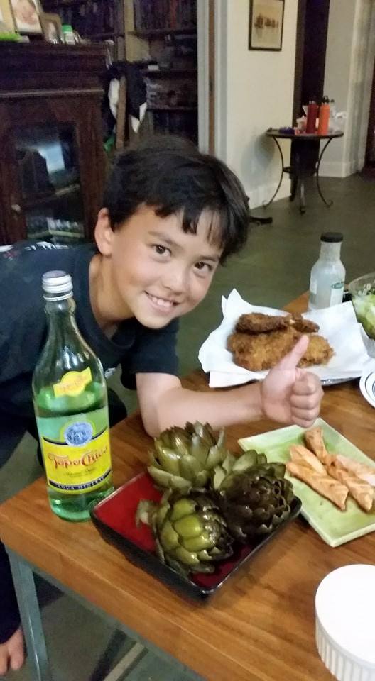 Check out the artichokes from the garden!!!! Oh, and a kid too. Originally posted on Facebook on April 22, 2015.
