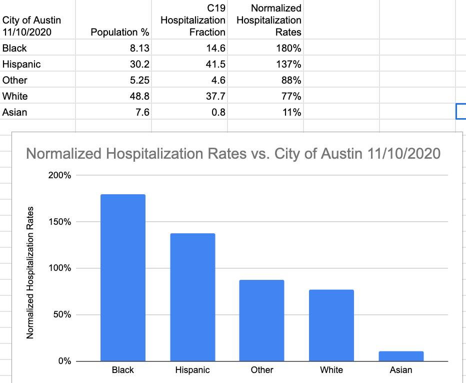 I was looking at the latest C19 data for Austin, and I was distracted by the very low hospitalization rates for our Asian population. So I looked up our demogra...