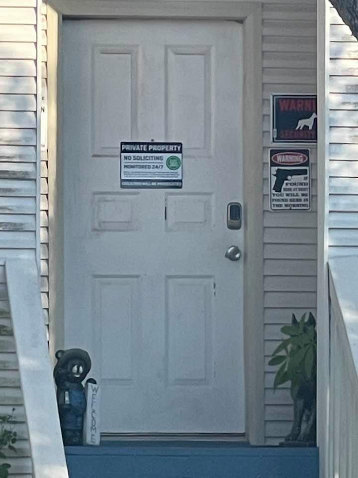 This is the front door of a house in my neighborhood. I don’t trust that bear. Originally posted on Facebook on September 30, 2021.