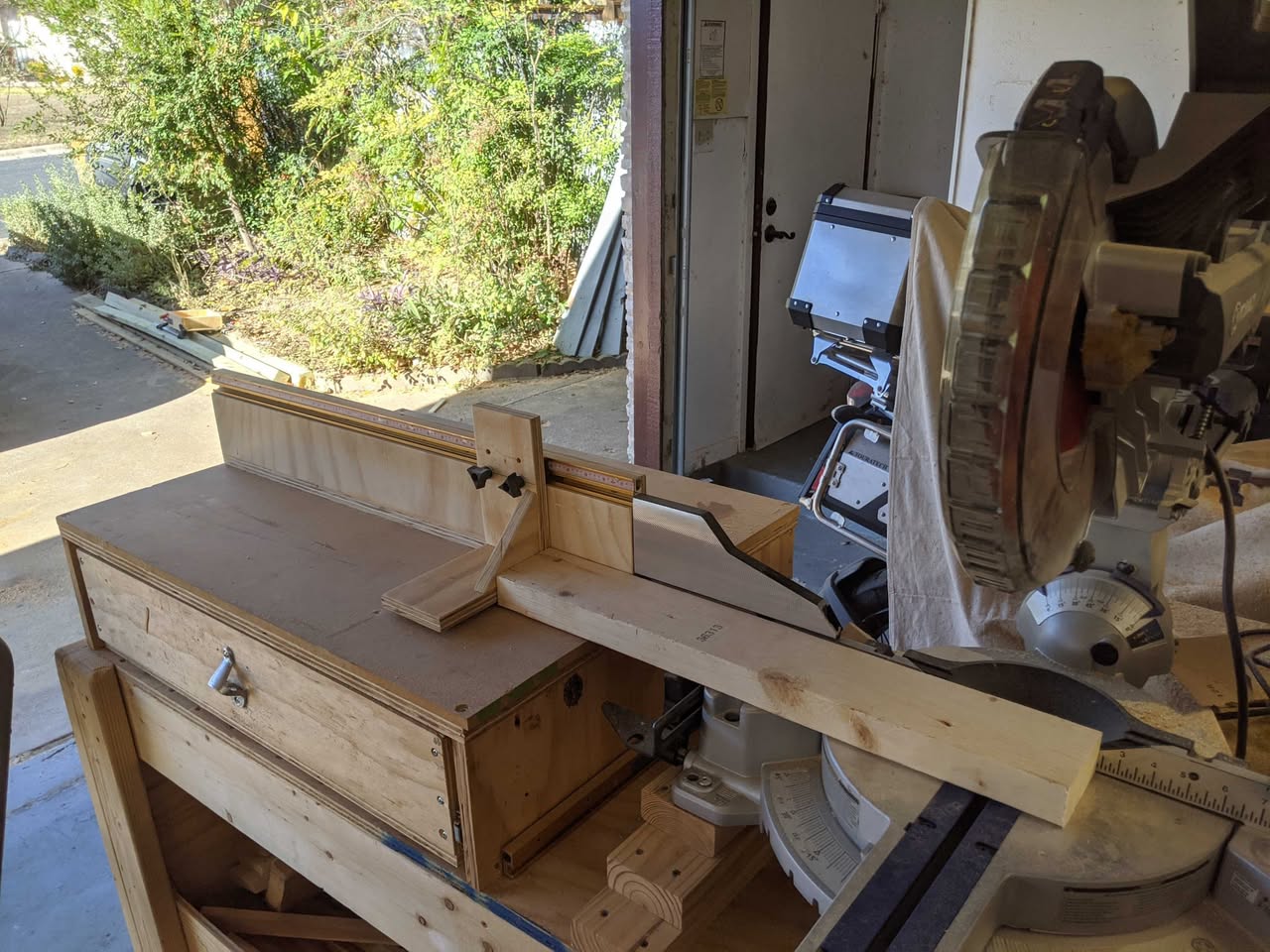 And a miter saw fence extension with a ruler and a stop.