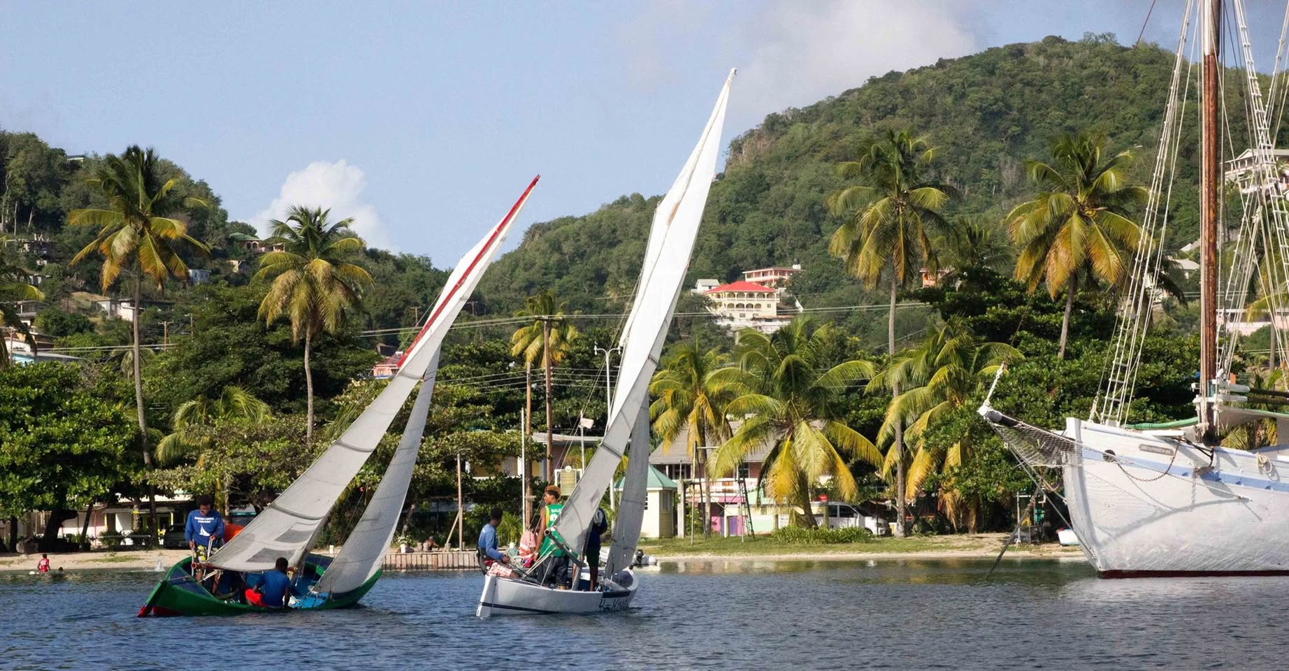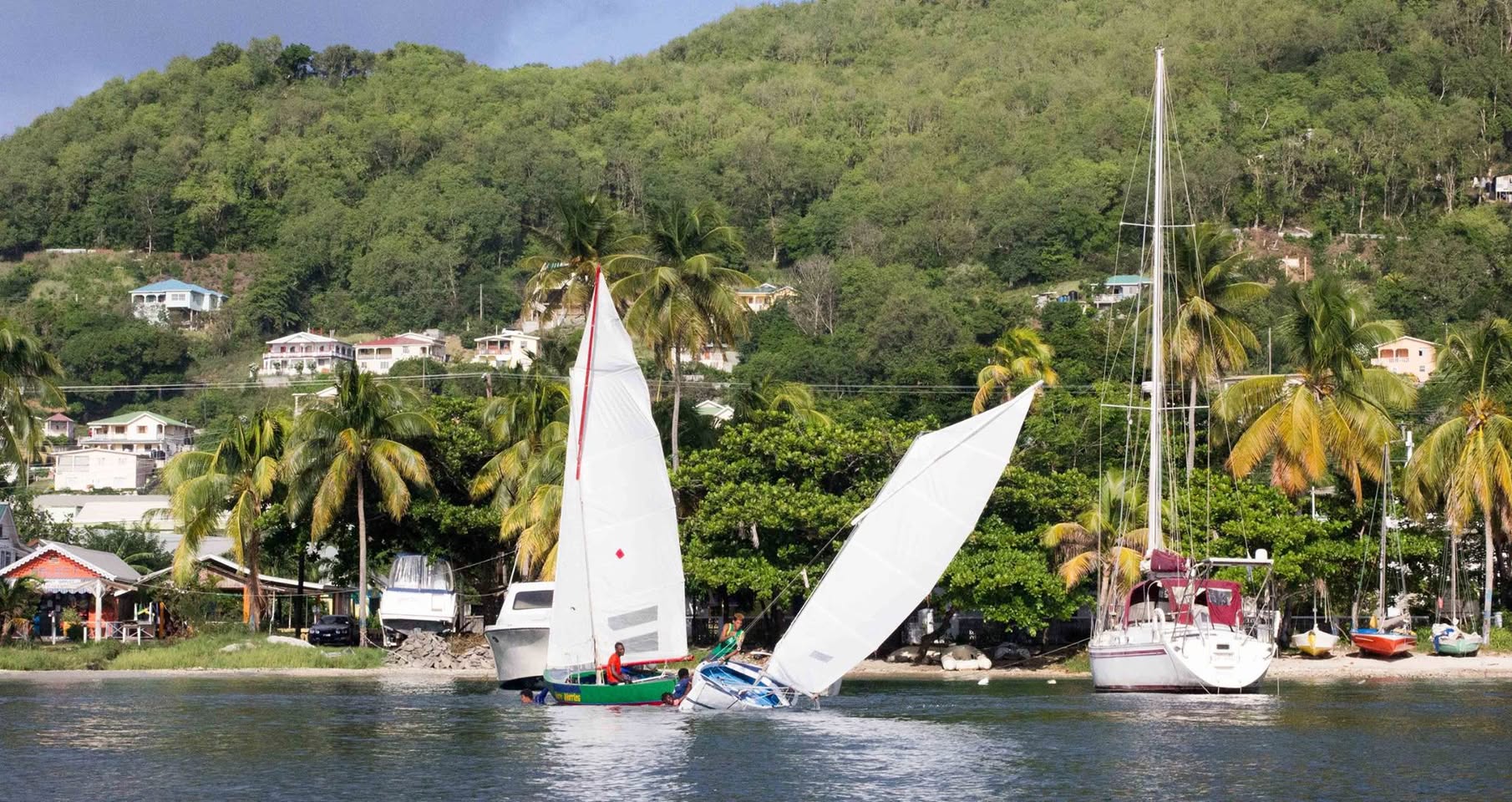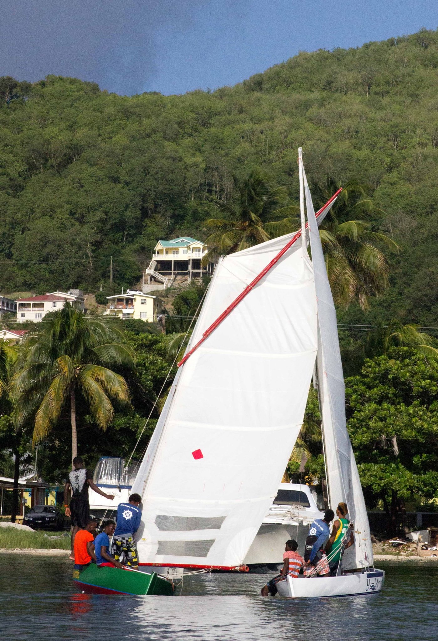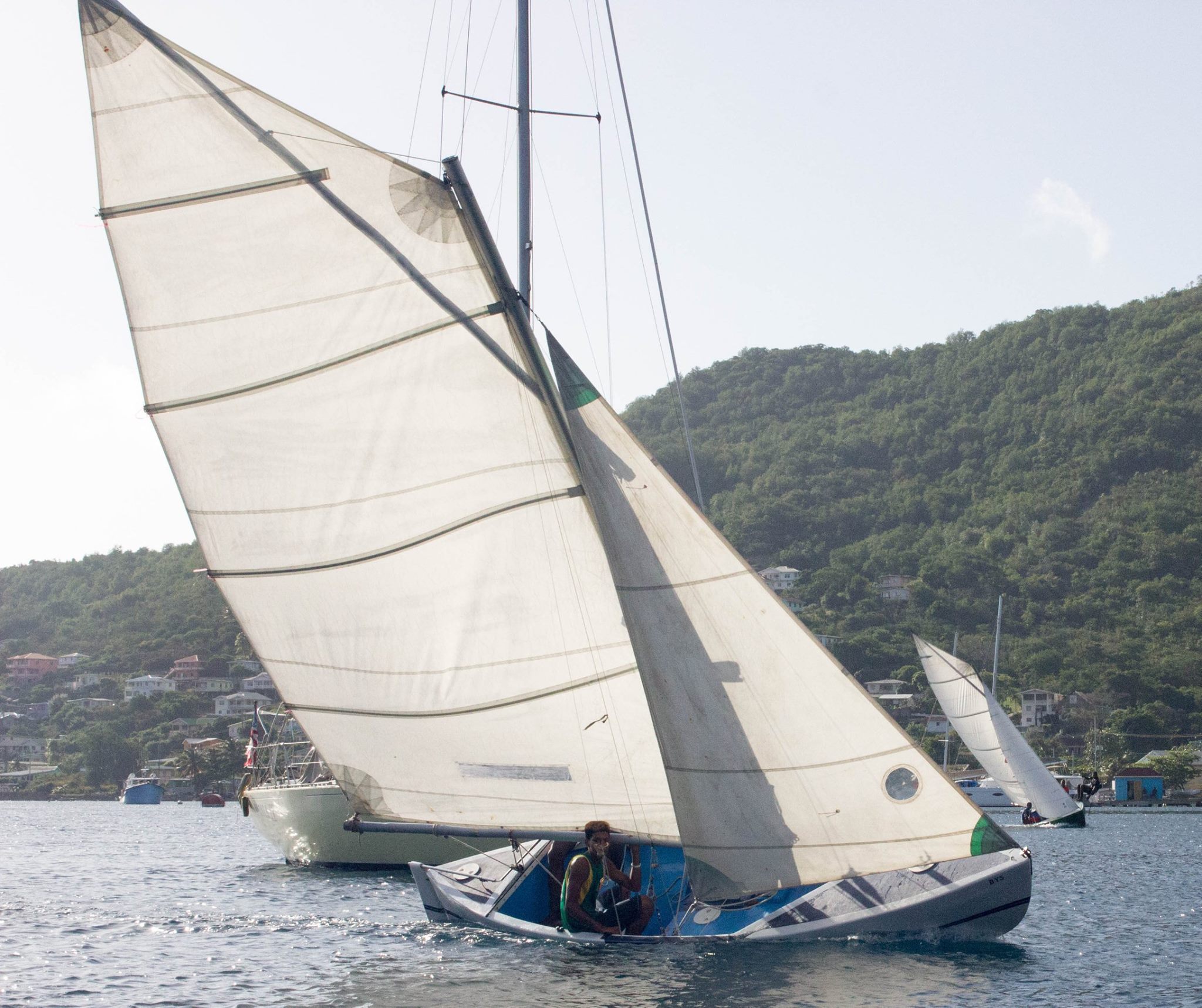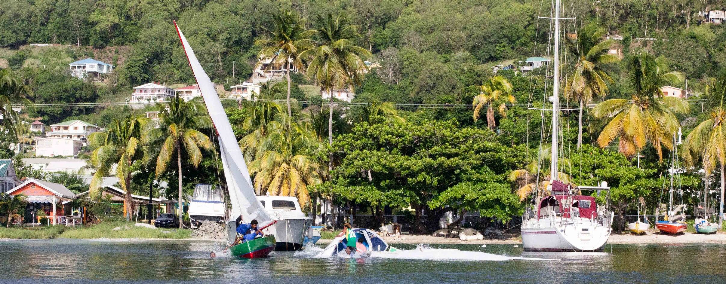 Here are some shots from late afternoon yesterday as we got into Bequia. These are the famous racing sailing boats that are locally built on the beach.