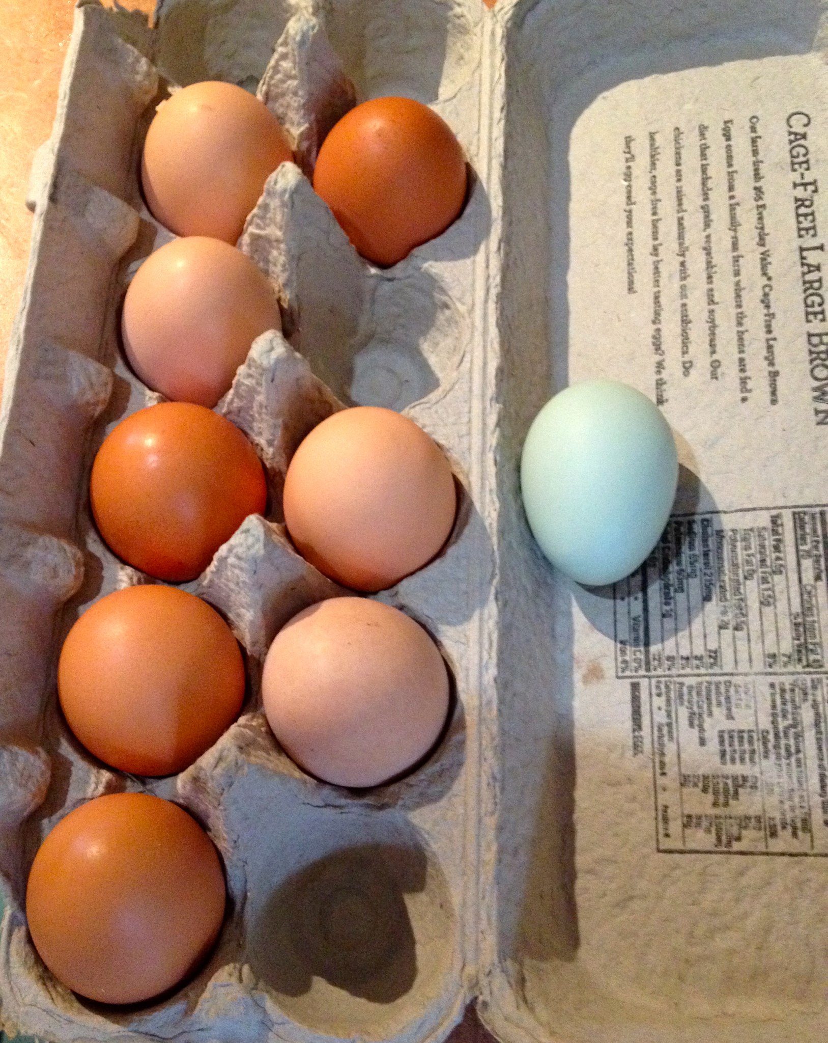 Check it out! Our first blue egg! Moments later it became my morning breakfast taco... Originally posted on Facebook on October 16, 2013.