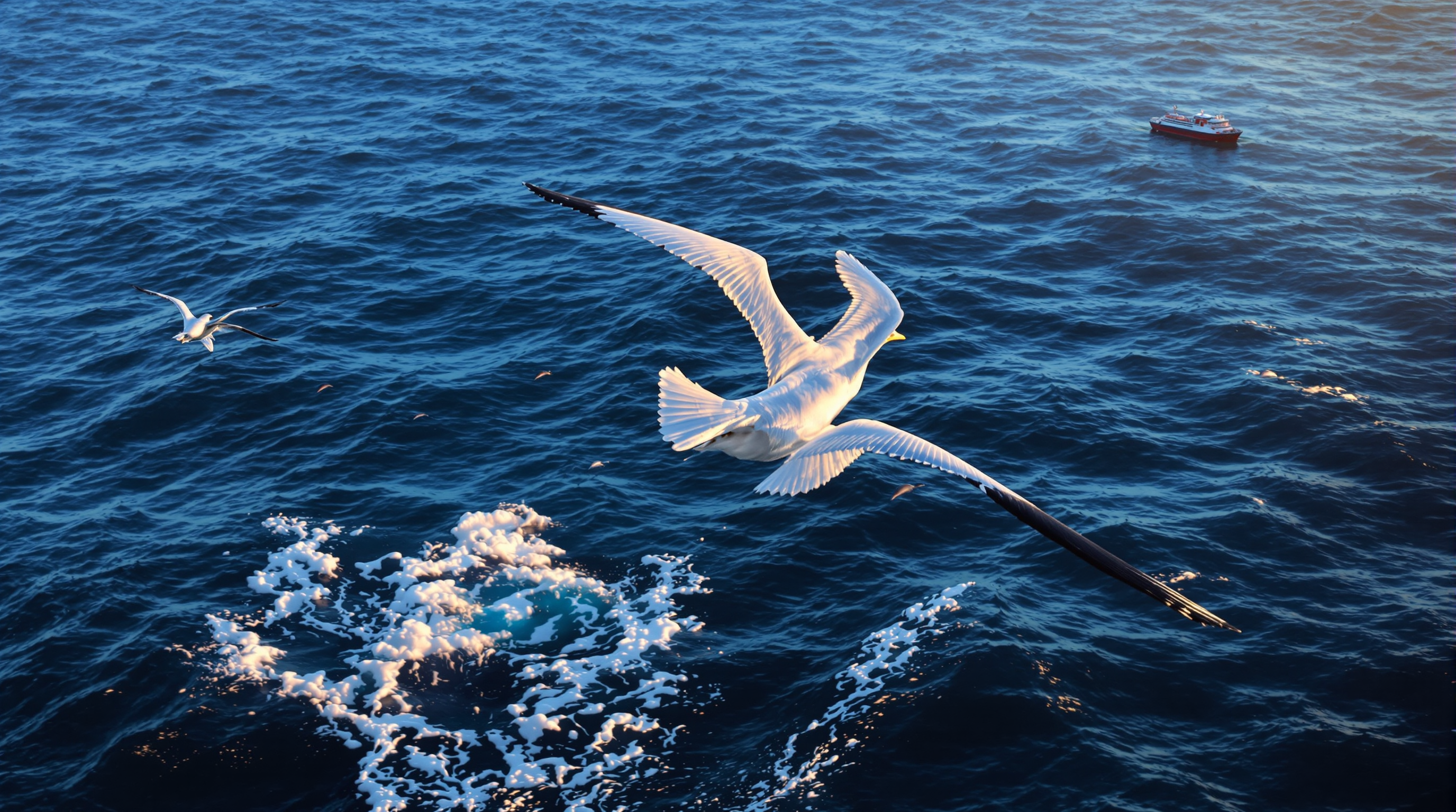 We could soar over remote islands, follow ships across vast stretches of water, and witness sunrises from the middle of nowhere. The perspective would be incredible - seeing weather systems roll in from hundreds of miles away, watching pods of whales and dolphins from above, and experiencing that perfect balance between solitude and the vast living ocean beneath us.