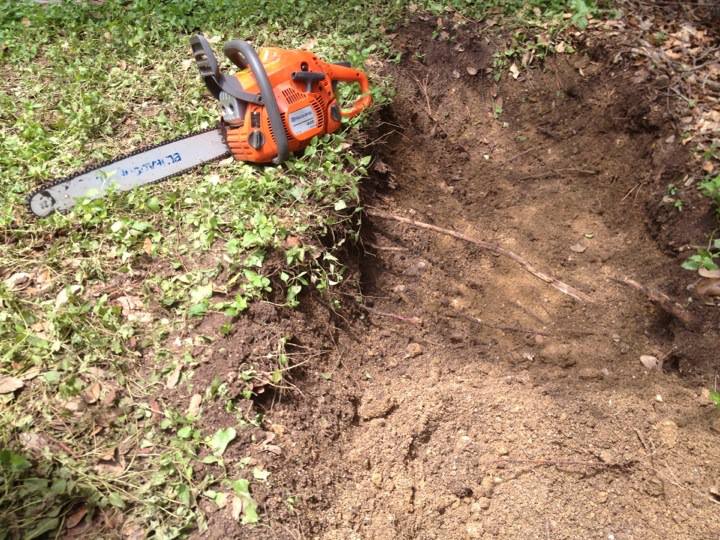 I just dug myself a very handy shallow grave. And lo and beyond I have my handy 18" chainsaw... Choices, choices...