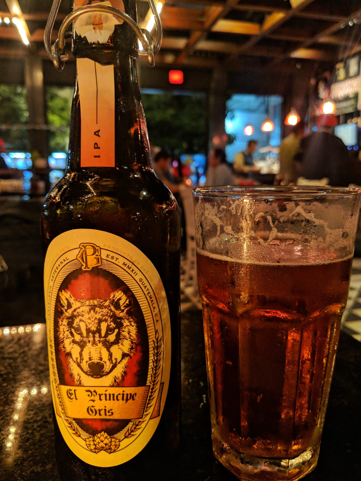 This is a local craft IPA from Guatemala! Check out the mini Grolsch style bottle. It is named Pantera from the El Principe Gris brewery. It is a smooth easy dr...