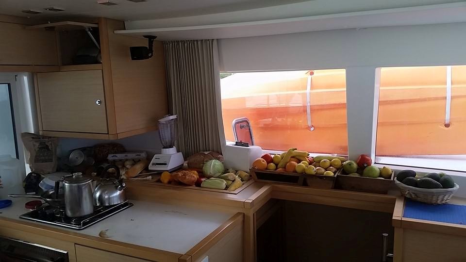 Provisioned. Ribeye steaks with garlic, fresh pepper corns, garlic and butter. Broccoli and potatoes, and rum punch...